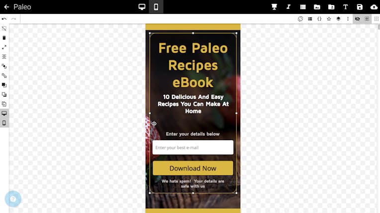 Convertri’s conversion algorithm automatically reflows all your elements so you don’t need to lay out the whole page again – just adjust the layout so it looks exactly as you want it.