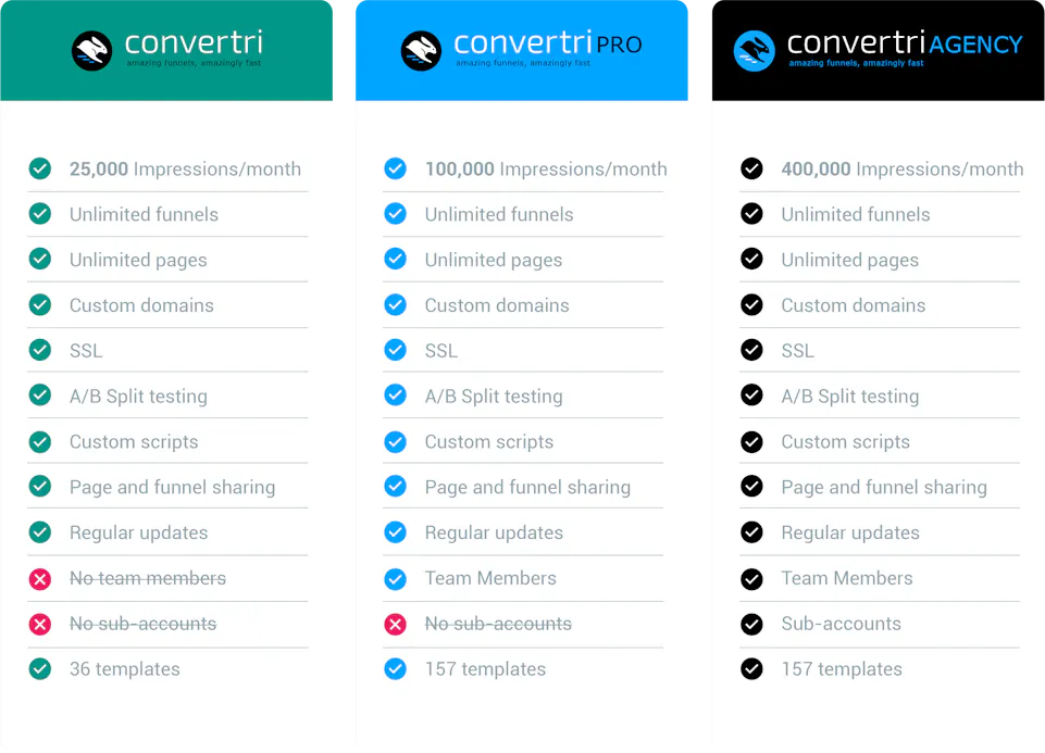 no subscriptions. You get Convertri for 12 months, and then you can choose if you want to keep using us. If you do, we’ll guarantee at least half price on the normal rates.