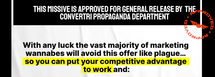 THIS MISSIVE IS APPROVED FOR GENERAL RELEASE BY THE CONVERTRI PROPAGANDA DEPARTMENT