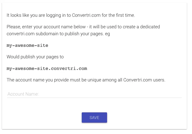 This is where your pages will be published to - so if you choose 'astfgl', the URL of your pages will be astfgl.convertri.com/yourpagename.